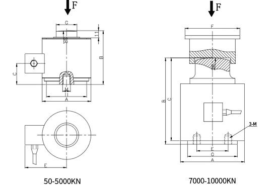 | 量程(KN) | 量程(t) | A | B | C | E | F | G | H | SR | Minch | Mnm | MDP |