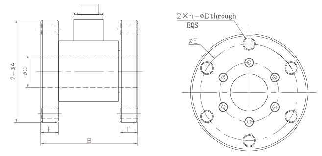 | 量程(Nm) 尺寸(mm) | A | B | C | D | E | F | n |