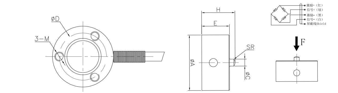 | 型号 | 量程kg尺寸mm | ØA | ØC | ØD | H | E | M | H1 | SR |